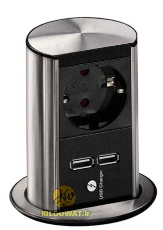 پریز توکار باخمن مدل ELEVATOR آسانسوری سوکت برق و دو سوکت USB یو اس بی
