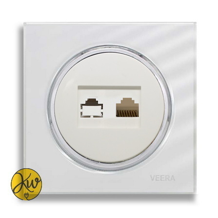 سوکت شبکه ویرا مدل آلفا گلس سفید با زه استیل اسپرت - ویرا الکتریک