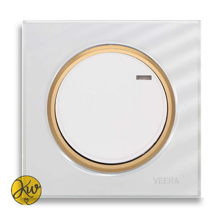 کلید تبدیل ویرا مدل آلفا گلس سفید با زه طلایی اسپرت - ویرا الکتریک