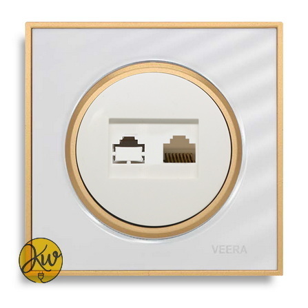 سوکت شبکه ویرا مدل آلفا گلس سفید با زه طلایی کلاسیک - ویرا الکتریک